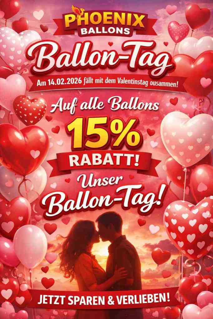 Am Aktionstag erhaltet ihr 15% Rabatt auf alle vorab gekauften Ballons. Das heißt: Jetzt sichern, weniger zahlen und feiern, wann immer ihr wollt!